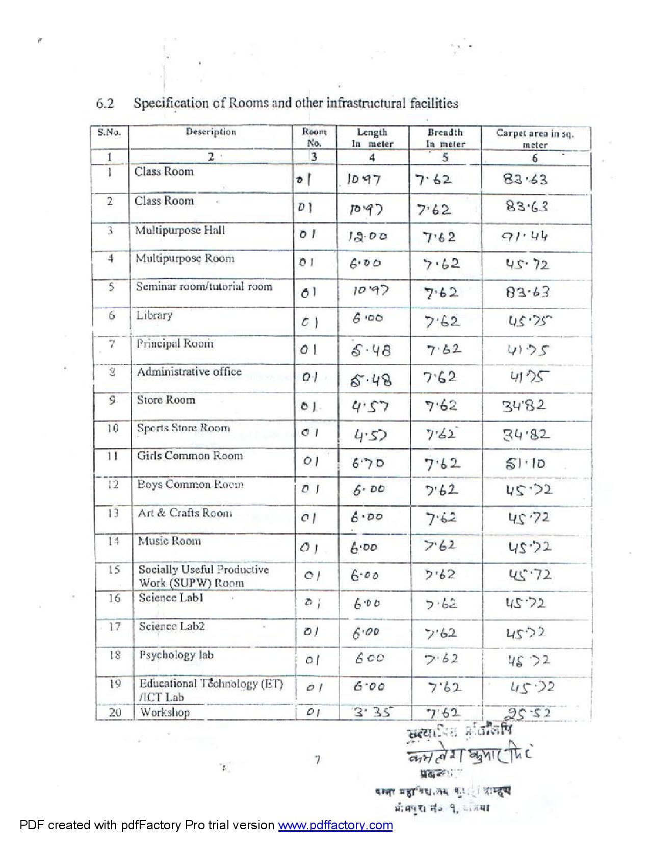 Environment Friendly Lecture Halls, Well Established Library, Well Equipped all Lab, Modern Computer Lab with Internet Facility, Drinking water facility with R. O. System, Huge Playground.