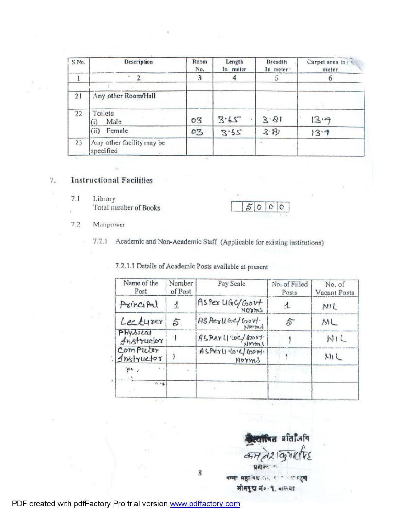 Environment Friendly Lecture Halls, Well Established Library, Well Equipped all Lab, Modern Computer Lab with Internet Facility, Drinking water facility with R. O. System, Huge Playground.